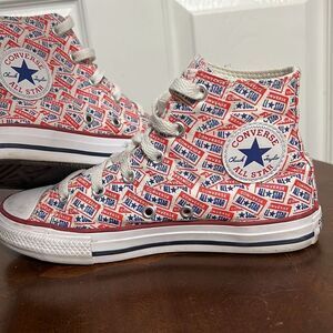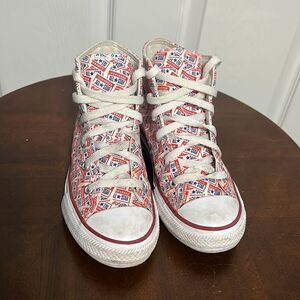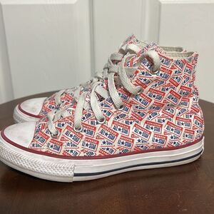 🔥🔥 CONVERSE Hi-Tops Red White Blue All Over Print - Big KIDS Sz 1 - PERFECT