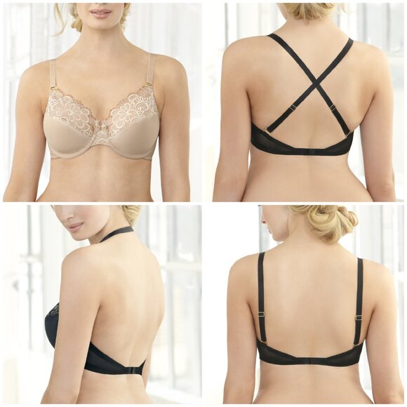 CONVERTIBLE Bra 40B ~Wear 3-Ways! Criss-Cross Backless Halter UNDERWIRE Nude NEW