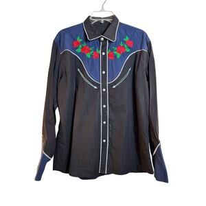 COOFANDY Men’s Embroidered in Roses Button Down Western Shirt / Size: XL