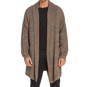 COOFANDY Mens Long Ruffle Knit Shawl Collar Cardigan Sweater