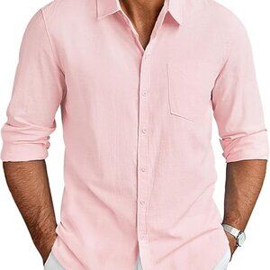 COOFANDY Men's Long Sleeve Button Down Casual Shirt; Men Long Sleeve Linen Shirts: Men's untucked linen shirt with button down collar, chest pocket, adjustable button cuffs, solid colors, relaxed fit, button up closure with a spare button