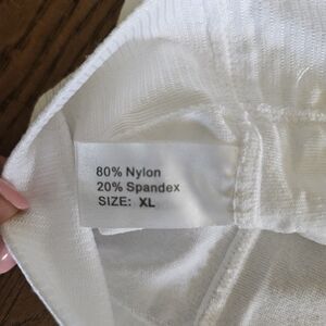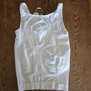 One white tank shirt. Elevate your workout routine with the COOFANDY Men's White XL Compression Shirt. Designed to enhance your performance, this slimming body shaper vest offers a snug fit that contours to your physique, providing a sleek silhouette under any activewear. Ideal for gym enthusiasts, the compression technology not only supports your muscles during exercise but also boosts your confidence with a sculpted look.