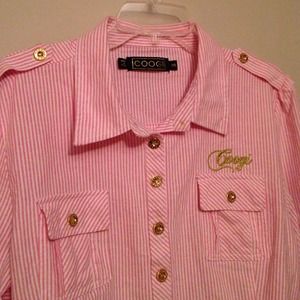 Gorgeous pink white stripes GOLD buttons. No belt. As Is.