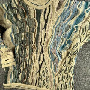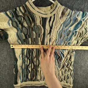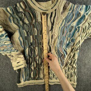 COOGI Australia Pure New Wool Crew Neck Sweater Intricate Knit Cables Ivory Blue