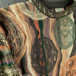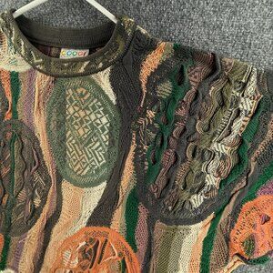 COOGI Australia Sweater Medium Abstract Unisex Crew Neck Medium Green Orange