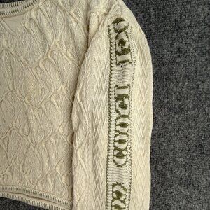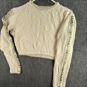 COOGI Australia Sweater Women White Crop Knit Pullover Sleeve Logos Short XL