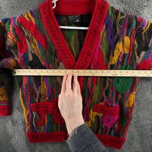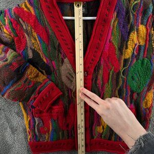 COOGI Authentic Women Sweater Knit Large Colorful All Wool Cardigan Pockets Warm