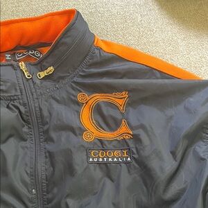 Vibrant COOGI jacket with bold colors. Features a mesh lining and zip closure.