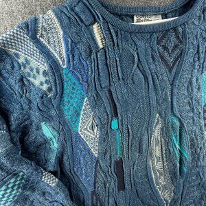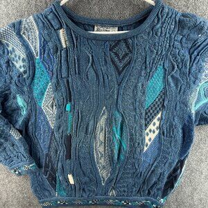 COOGI Blues Australia Sweater Small Blue Intricate Boat Neck Baggy Oversized