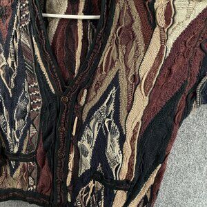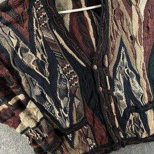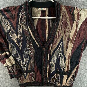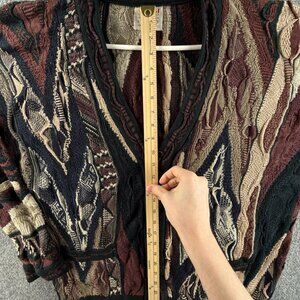 COOGI Cardigan Sweater Australia Button Up V Neck Knit Dark Red Large Cotton