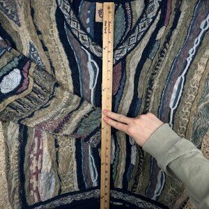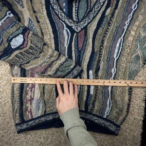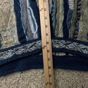 COOGI Classic Sweater Multicolor Intricate 3D Abstract V Neck XL Linen Cotton
