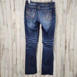 * Features~ rhinestone embellished, 5 pockets, button zipper closure, distressed, casual, everyday, Y2K, 90's, cotton, school, work, date night, clubbing