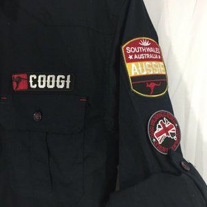 COOGI Black Long Sleeve Button Up Shirt Size 18 Aussie Patches Cuff Sleeves