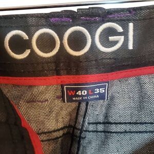 COOGI Mens Sz 40x35 Black Dark Wash Baggy Jeans Hip Hop Y2K Embroidered Pockets