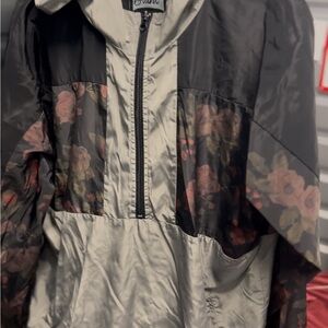 Dynamic jacket with wavy multicolor design. Features a hood and embroidered logo.
