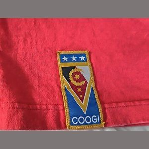 This vibrant red polo from COOGI features a striking gold medallion design on the front, adding a touch of luxury to its sporty style. Made from comfortable material, it offers a casual yet sophisticated look perfect for any occasion.