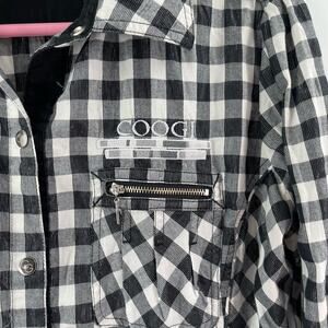 COOGI Shirt Dress Size Large Buffalo Check Plaid W&B Silver Logo Zippers Checked