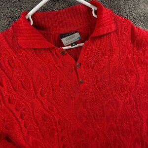 COOGI Sweater Men Knit Red Intricate Medium Australia Made Polo Collared Adult *