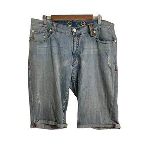 COOGI Womens Rainbow Embroidered Pocket Distressed Cuffed Bermuda Jean Shorts 18