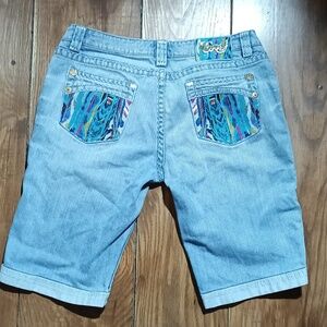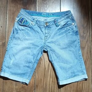 Stylish COOGI shorts. Features vibrant multicolor pattern. Eye-catching gold logo detail.