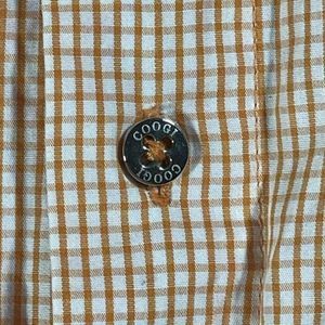 COOGI Mens Short Sleeve Button Up Shirt Orange Check Embroidered Emblem Size M