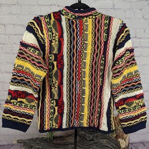 Has "COOGI" knitted throughout the sweater. COOGI brand made popular by the Cosby Show, Notorious B.I.G., Biggie, and other Hip Hop artists.