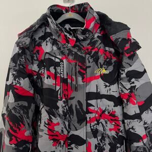 Size 14/16 COOKFIP Winter Jacket in Black/Gray/Red. Removable hood. Zip up pockets. New with Tags.