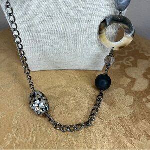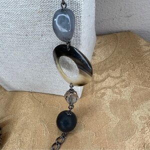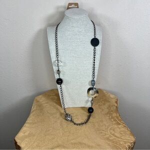 COOKIE LEE BEADED NECKLACE STATEMENT 34” LENGTH BLACK GREY CLEAR SILVER BOHO