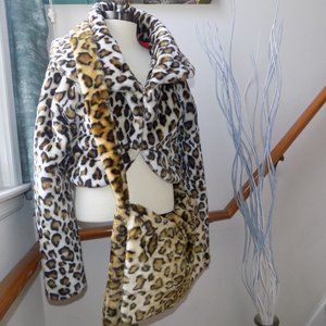 COOL ATTITUDES Leopard Faux Fur Jacket Size Small & Crossbody Purse Ladies Set
