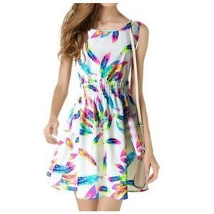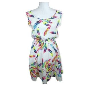 COOL FASHION MULTICOLOR FEATHER PRINT DRESS SZ.M EUC.
