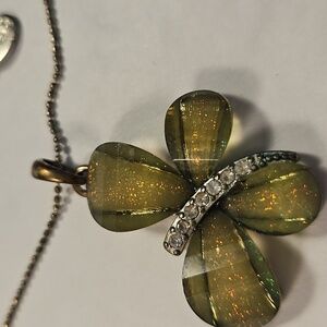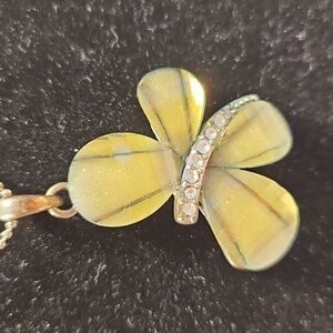 COOL JEWELS Elegant Rhinestone & Silver Flower or Butterfly Pendant 18"+ Necklace. The peddles or wings of the pendant have wonderful colorful sparkles. See in the second photo. This exquisite necklace features a stunning flower or butterfly pendant in gold and silver tones, perfect for adding a touch of elegance to any outfit.