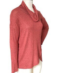 COOLALPACA Soft Lightweight Cowl Neck Sweater Sz M Button Accents Rust Red 214E