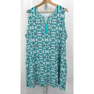 COOLIBAR Oceanside Tank Dress Sleeveless Geometric Blue Green Size 2X Plus