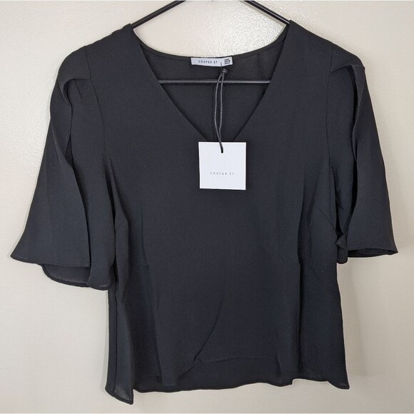 COOPER ST WILD AT HEART Black V-Neck Relaxed Fit Top USA Size 4