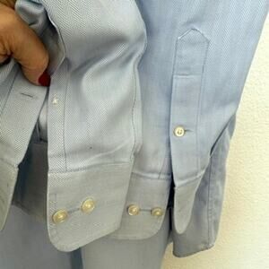 COOPER & STEWART Dress Shirt Light Blue Herringbone Cotton Cufflink Cuffs XL