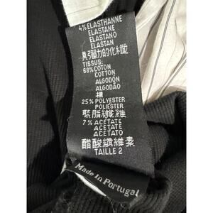 Embroidered script on cuffs which I believe says "de fil en aiguille" meaning gadually or step by step (but not 100% sure)