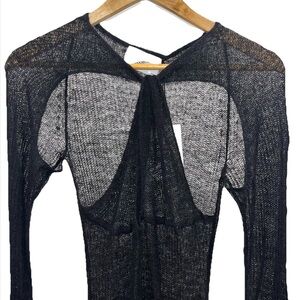 COPERNI Black Wool Alpaca Open Knit Maxi Dress M Twist Cutout Long Sleeve NWT