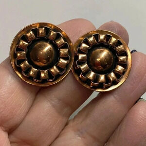 COPPER FLOWER 🌸 CLIP ON DISC EARRINGS. VINTAGE