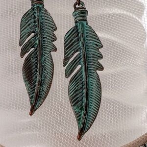 COPPER Feather Dangle Earrings HYPOALLERGENIC