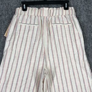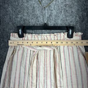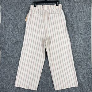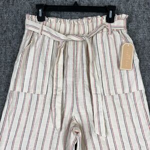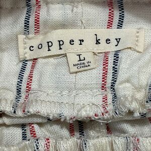 COPPER KEY PANTS WOMENS LARGE NATURAL STRIPED BELTED WIDE-LEG CROPPED TROUSER