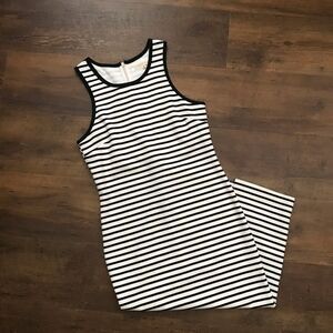 COPPER KEY Striped Fitted Midi Dress Size Medium