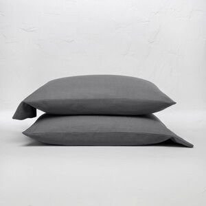 100% Washed Linen Solid Pillowcase Set - Casaluna Gray King