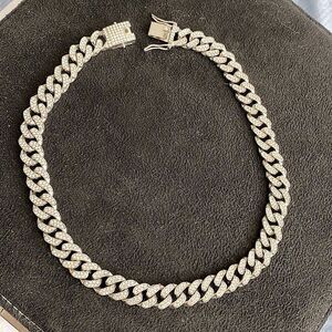 17” x .5” CZ silver chain necklace. Diamond double lock clasp. No missing stones