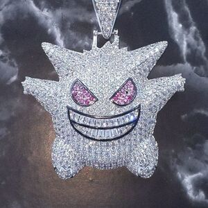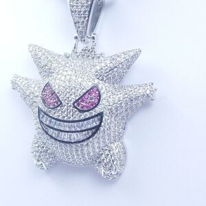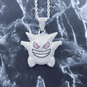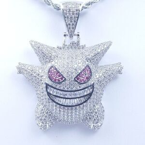 New Icy Silver Finish Gengar Pendant + 20" x 3mm Silver Finish Rope Chain over Stainless Steel for Men & Woman.