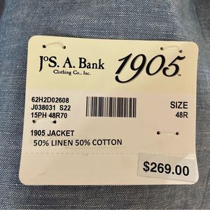 COPY - 48R JOS A BANK 1905 Collection Chambray Sportcoat Blazer Linen Cotton Bl…
