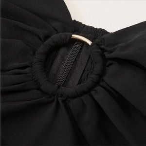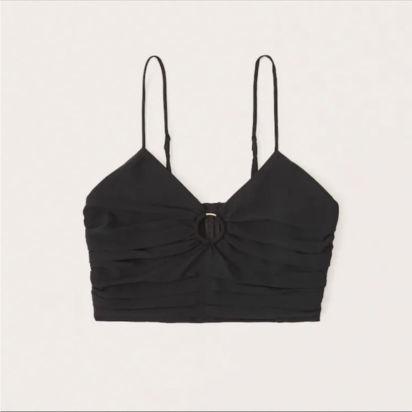 Flattering top in a soft faux silk fabric, featuring trendy O-ring hardware, subtle ruching detail at underbust, adjustable straps and back smocking. Imported.