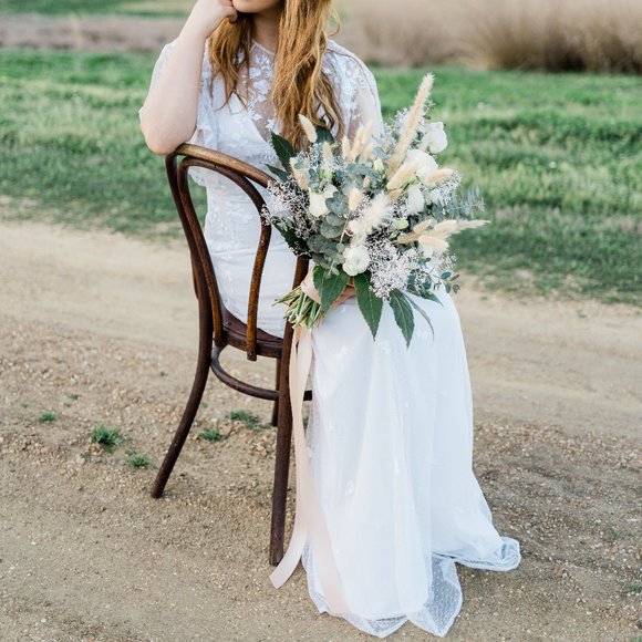 Bought this for a bridal styled shoot and it was canceled. So I haven’t used it since it was shipped to me. Any wear was before me and after a dry cleaning it will be fine. Pictures of some of the stained spots. Still in good condition.
