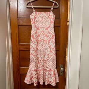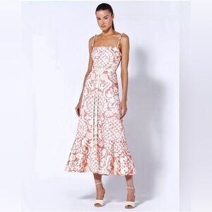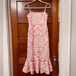 Pink and white Alexis Nolana dress size XS. Excellent condition besides one tiny cut in the dress pictured. Should be really easy to fix. Tried on and didn’t fit. Originally $750.