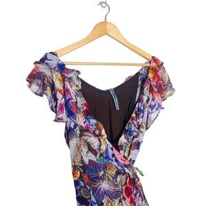COPY - Anthropologie Wrap Dress Size M Floral Mini Ruffled Purple Bohemian Flow…