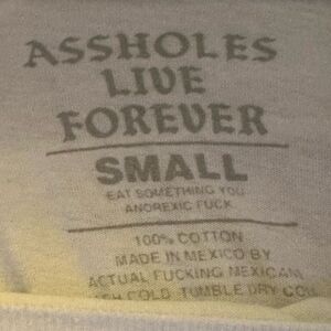 Assholes Live Forever White T-Shirt w Black Rose NEW